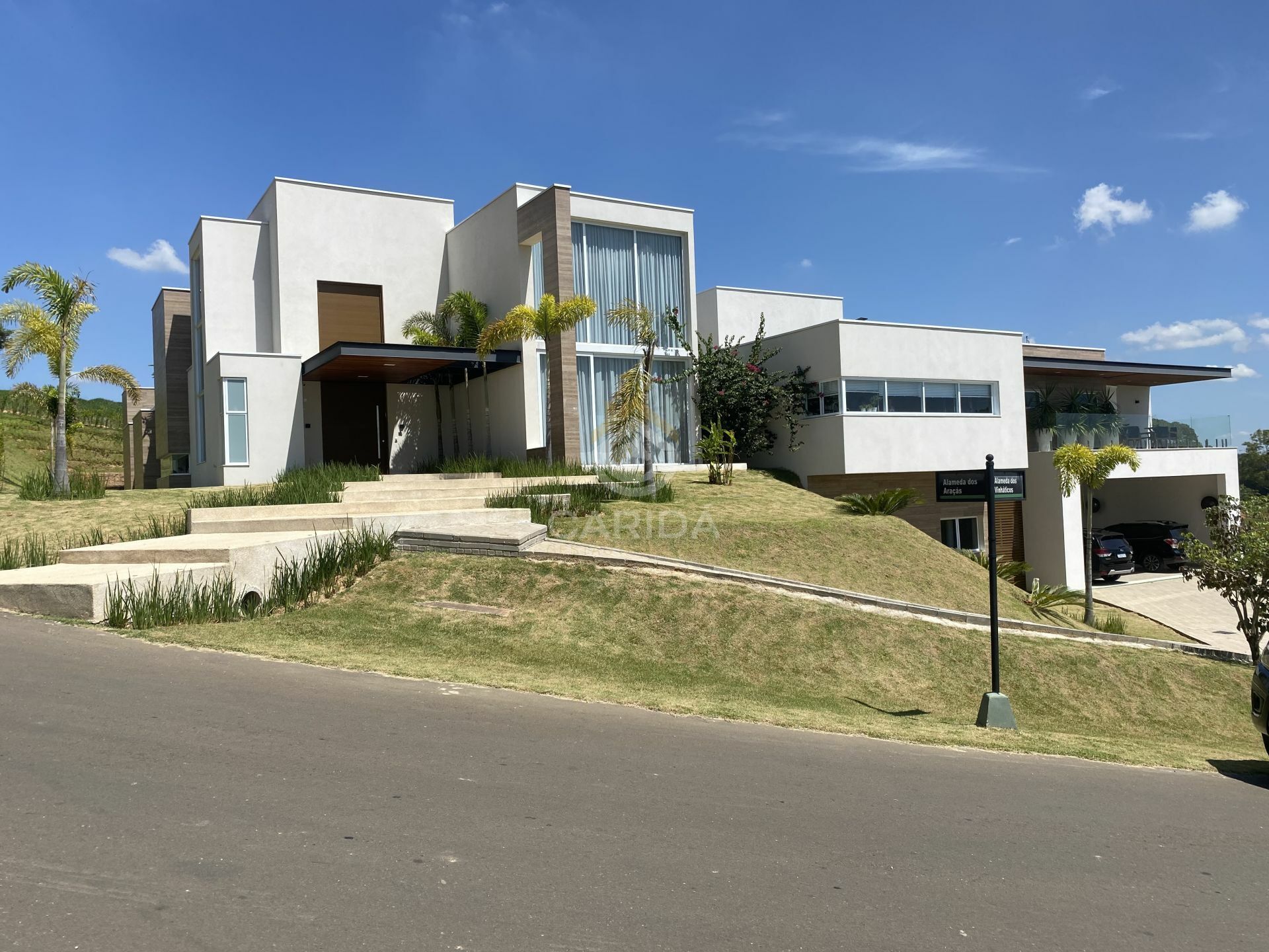 Dispõe de 1.000 m² de área construída e é praticamente térrea, sendo apenas a suíte master no piso superior e outras 4 amplas suítes.