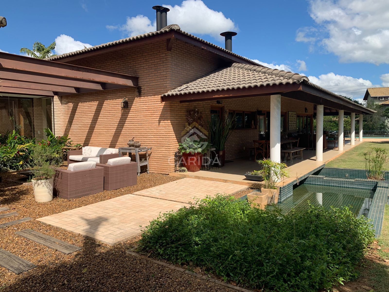O imóvel está situado em um terreno generoso, com paisagismo exuberante e total privacidade. O condomínio oferece segurança 24 horas, controle de acesso, área verde, e infraestrutura de alto padrão.