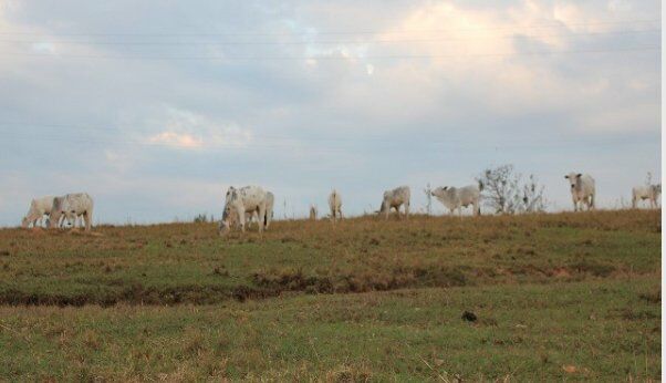 Pastagem formada em braquiaria, lago, nascente,