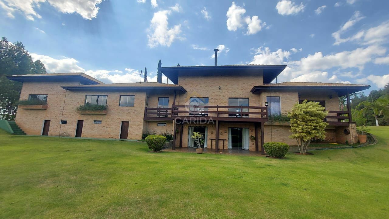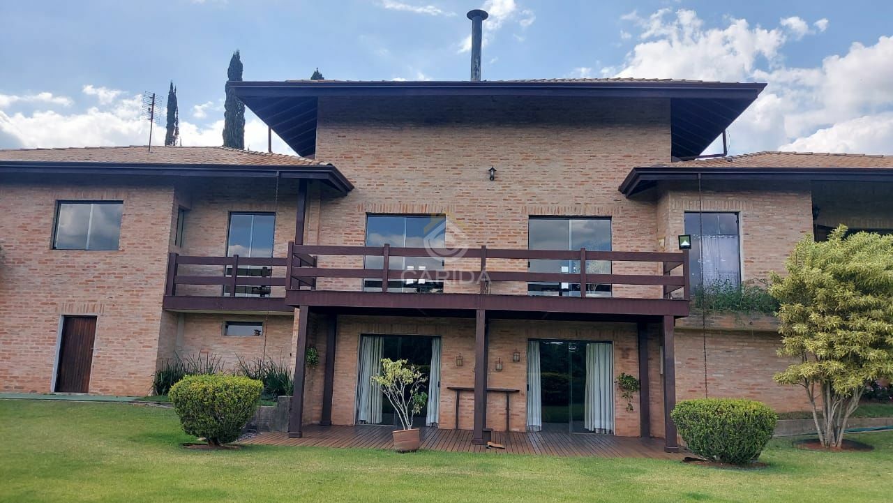 Casa sede de tijolinho, pé direito duplo na sala, ampla com 3 ambientes, estar, jantar e lareira.