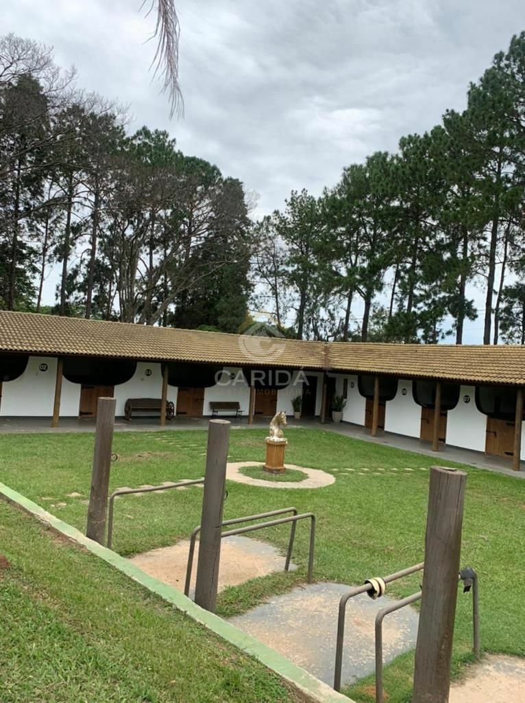 Estrutura para equinos completa, com duas pistas descobertas e uma pista para apresentação coberta, com espaço gourmet para apresentação, pavilhão de baias composto por 8 baias, farmácia, selaria etc.